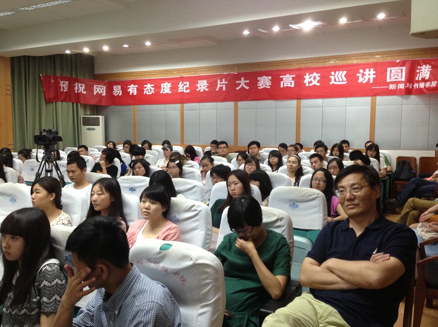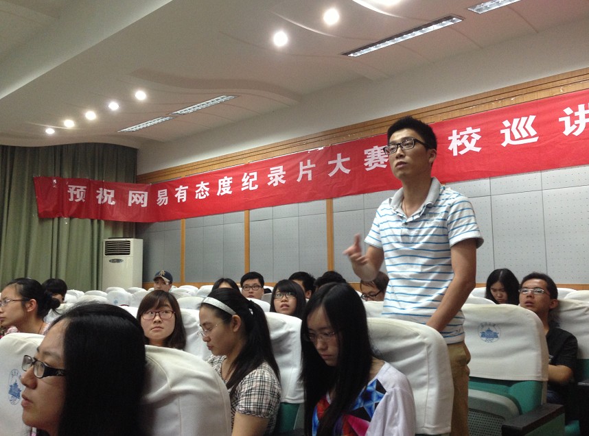 本次活动由网易视频联手必一运动广电人协会主办,由杭州沐户文化创意有限公司、瓢虫映像协办,必一运动研究生会承办。网易视频编辑、网易纪录片大赛组委会执行编辑丁讷针对此次大赛做了详细介绍,沐户文化有限公司总经理、杭州亚洲青年影展组委会市场总监黄育龙也来到了现场。公司广播电视系教授王瀚东老师、广播电视系副主任张卓老师也出席了此次活动,而公司研究生辅导员肖劲草老师在这次活动中则以主持人的身份友情助阵。此外,BBC纪录片《为什么贫穷》系列之《出路》副导演程春霖也低调现身。来自全校各个公司的同学齐聚一堂,甚至还有已毕业的同学以及校外纪录片爱好者,报告厅几乎座无虚席。