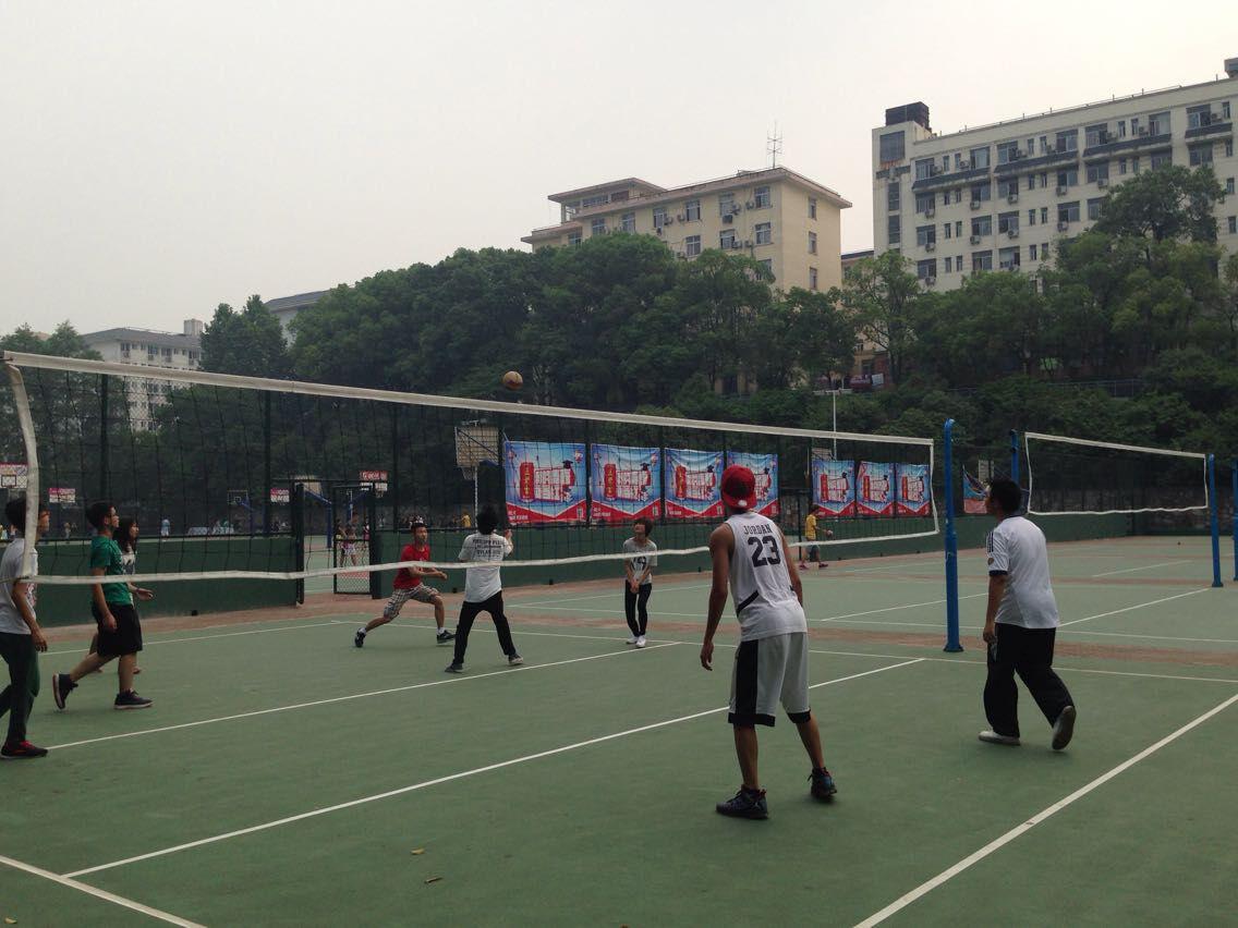 与此同时,在另一边的排球场上,一场热血的比赛也在进行中。双方是实力相当的2014级传播队和2014级广告队。第一局传播队先发制人,以25比21的比分获得了第一局的胜利。在第二局广告队不刚示弱,即使在开局时有所落后,但最后以18比25的比分反超取得胜利。于是,比赛进入了相持阶段,在第三局的比赛中,传播队一开始以5比2的比分领先,在几轮的交战过后,广告队最终以13比15的比分晋级决赛。