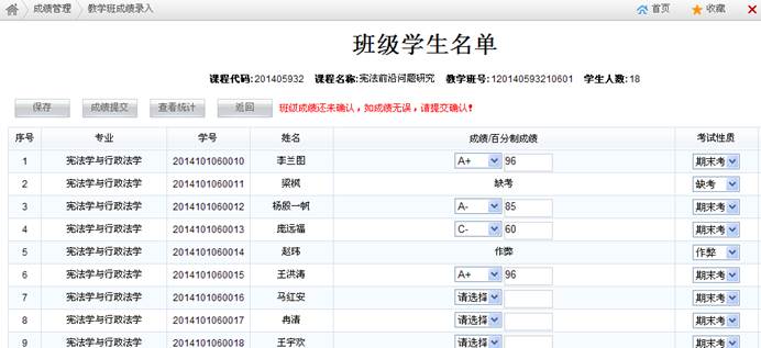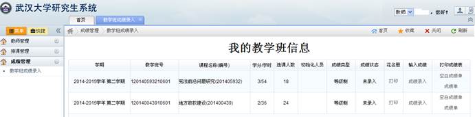 (5)对于一个教学班有多位任课教师的情况,第一位单击“成绩录入”链接的任课教师具有该教学班的成绩录入权限,其他任课教师仅有成绩查看权限。