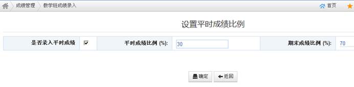 2、第一次给某个教学班录入成绩时,单击“成绩录入”链接,首先设置“是否录入平时成绩”,如果选中该复选框,表示会录入平时成绩及期末成绩,此时应设置平时成绩比例(期末成绩比例随之生成),如图二所示,系统将根据录入的平时成绩、期末成绩及相应比例,自动计算总评成绩;如果不选中该复选框,表示总评成绩采用手动方式直接录入。