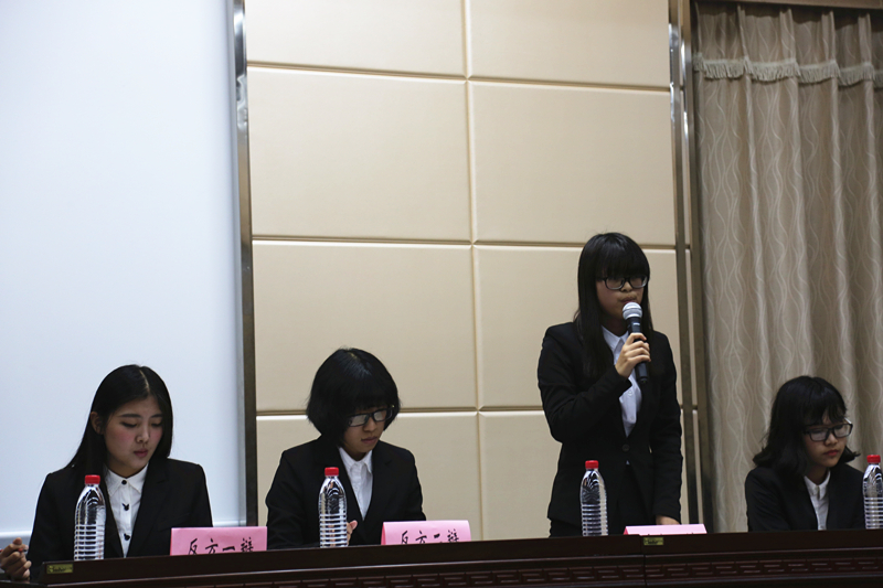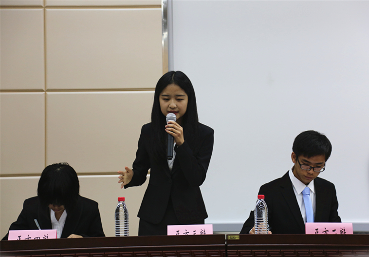 本次新生辩论赛的决赛邀请了华中科技大学新闻院辩论队和中南财经政法大学法公司辩论队的同学前来观看。本场评委来自必一运动校辩论队,他们是陈金朝、赵汉宇、吴傲寒、彭弼君、聂凯。
