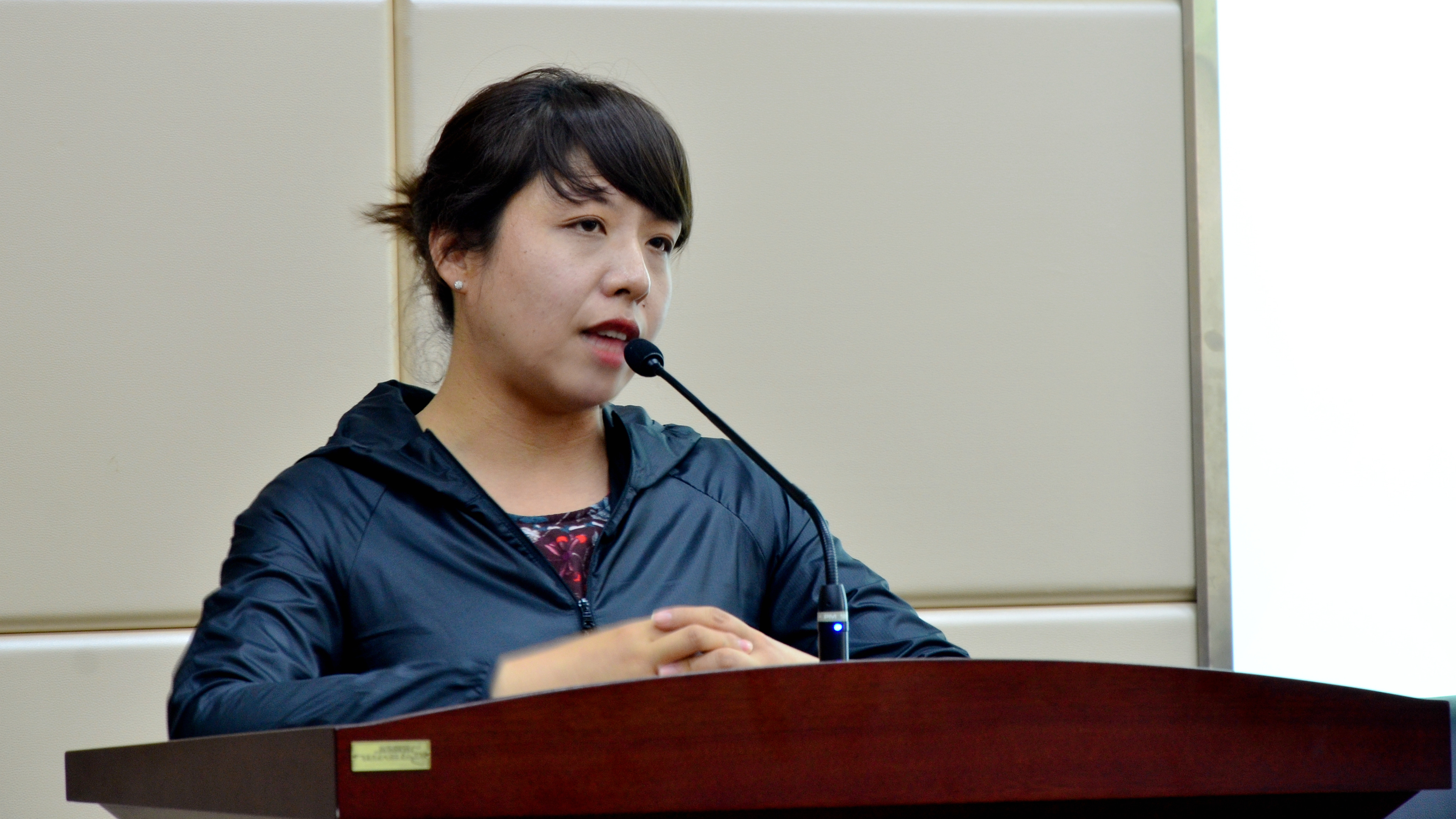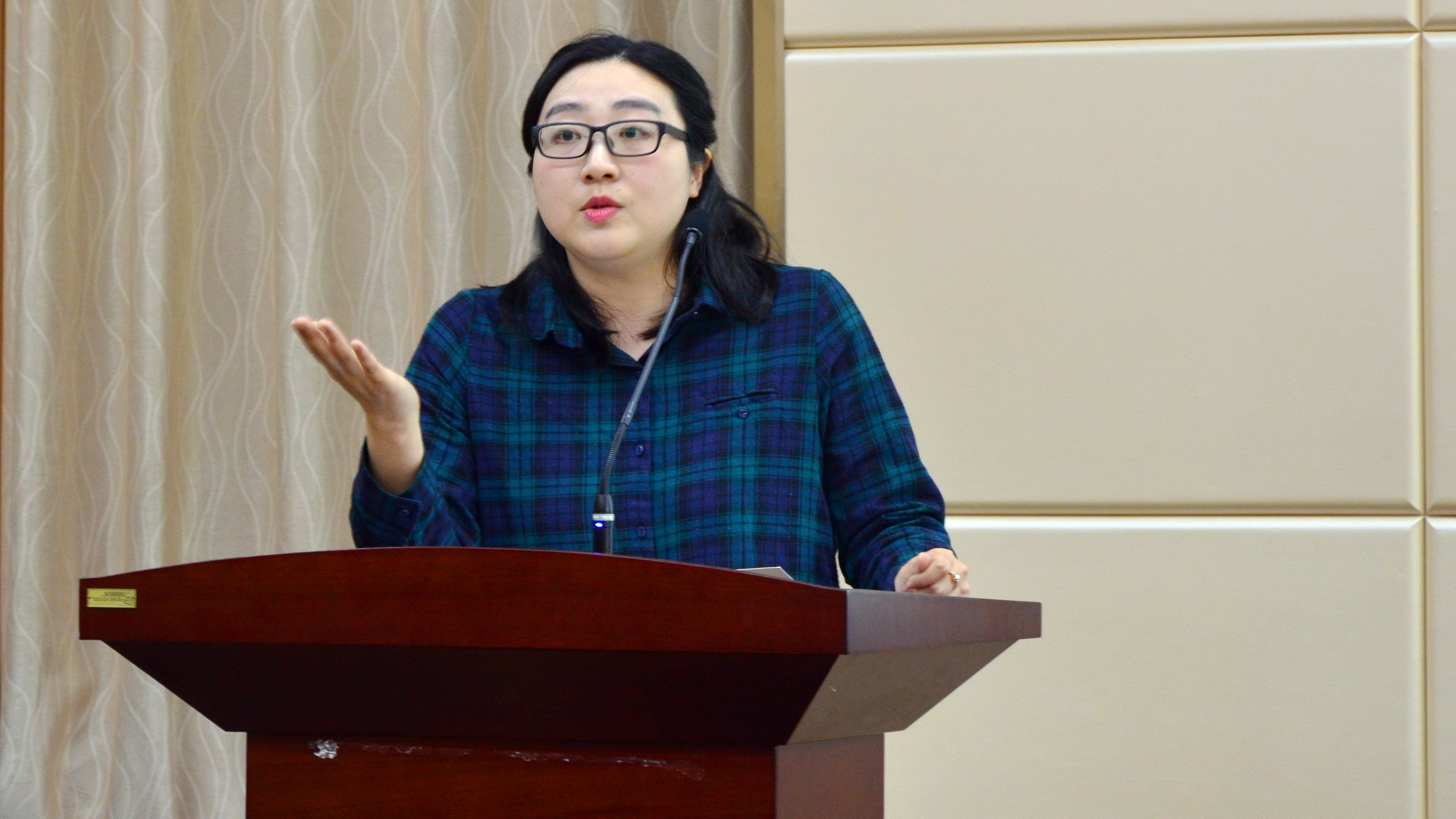 第一个上台的是新闻系的叶晓华老师。在叶晓华老师看来,新闻学这个专业是一个有着深厚的基础和积淀同时也是非常有高度的一个专业。中国国内的新闻与传播学最初就是以新闻学为核心内容的。“所以从传统历史基础和积淀方面来说,我们院的新闻学有着独特的一份。”她觉得新闻系的老师都非常踏实,非常有思想有深度。