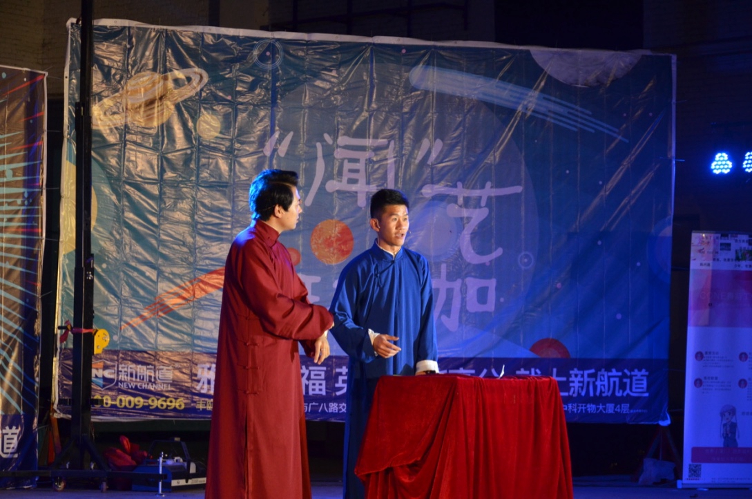 谢星昊等多位新生献上了爆笑小品《白蛇歪传》,将观众带回千年前的秀美西湖,一同回忆起那白娘子与许仙相守相离的爱情故事——虽然白娘子与小青是由男孩反串的。但丝毫不妨碍大家齐齐感叹“人间有真爱”。