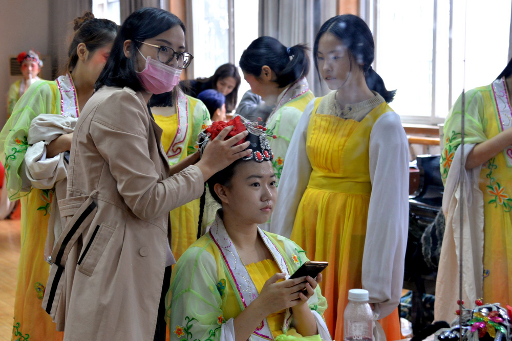 当熟悉的音乐回荡在她们耳边,她们沉着地挥舞水袖,甩、拨、勾、挑,眼波流转,舞姿曼妙,水袖在她们手中俨然化为翩翩起舞的蝴蝶。扮相娇俏、身姿婀娜的姑娘们完美展现出刚柔相济的东方美感,令人叹服。