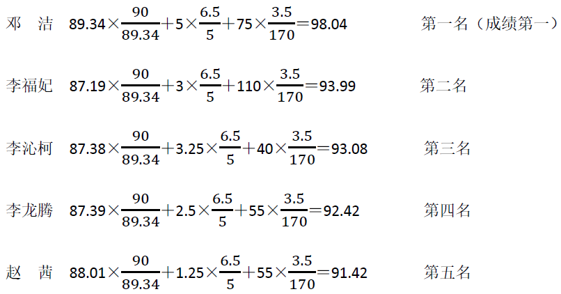 1.在核算科研成绩过程中,新闻学专业由于登分差错而存在算错分数情况,公司推免工作小组对新闻学专业科研加分进行复核并重新计算,该专业排名如下: