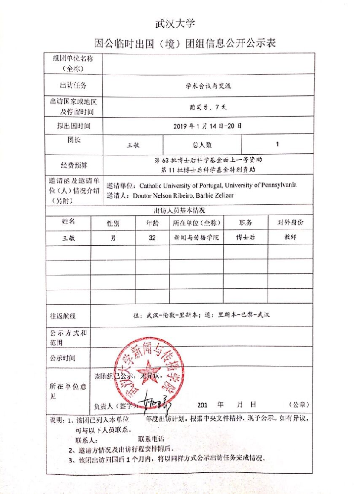 必一运动因公临时出国(境)公示表(王敏)