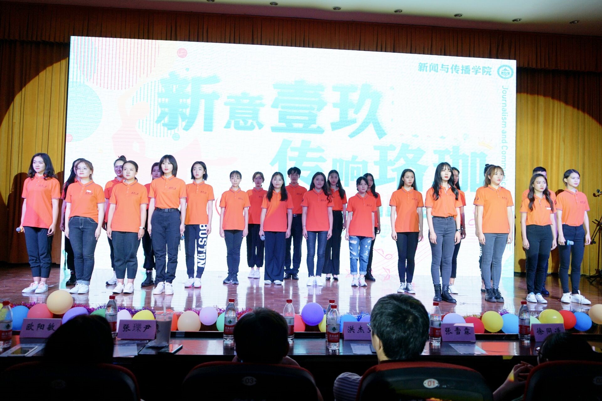 晚会由激情洋溢的舞蹈串烧开场,全场气氛瞬间被点燃。本场晚会节目内容丰富,除了传统的歌曲、舞蹈、朗诵外,还有舞台剧和T台走秀。同学们热情澎湃,欢呼声一浪高过一浪,现场气氛十分热烈。