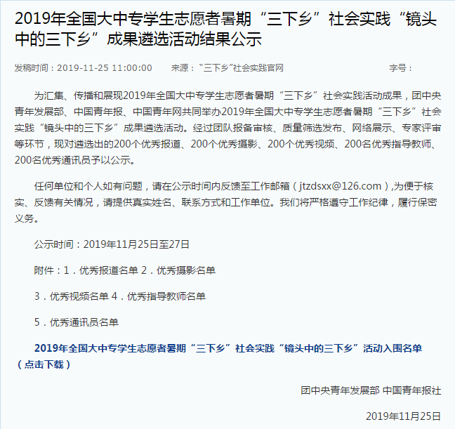 喜讯|公司实践队荣获团中央“镜头中的三下乡”成果遴选活动“优秀视频”奖