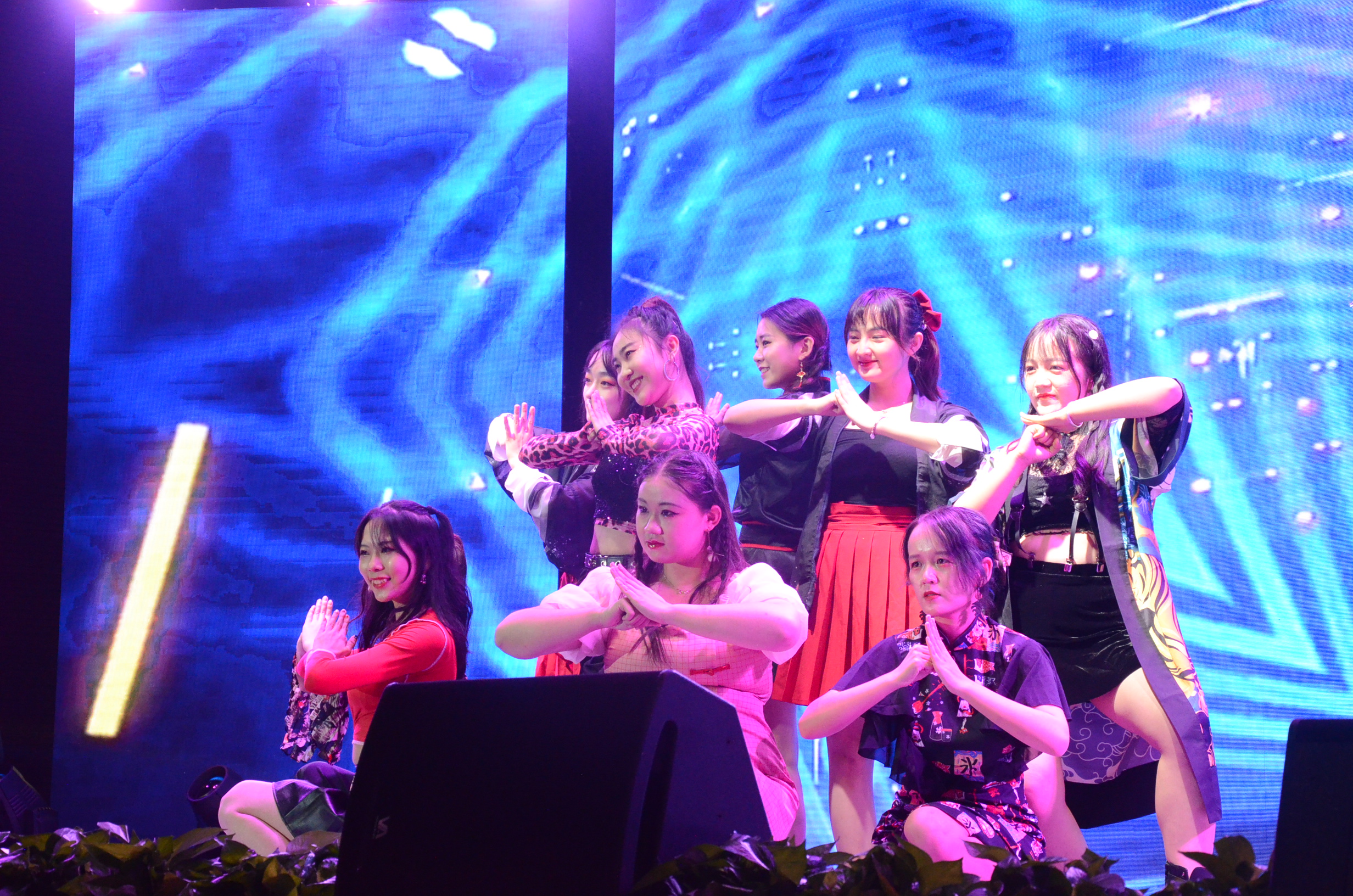 乐起舞动,激情四射的开场舞《乘风破浪去宝岛》瞬间调动起观众们的热情,一场“新新学子”在珞珈山的首秀正式开场!