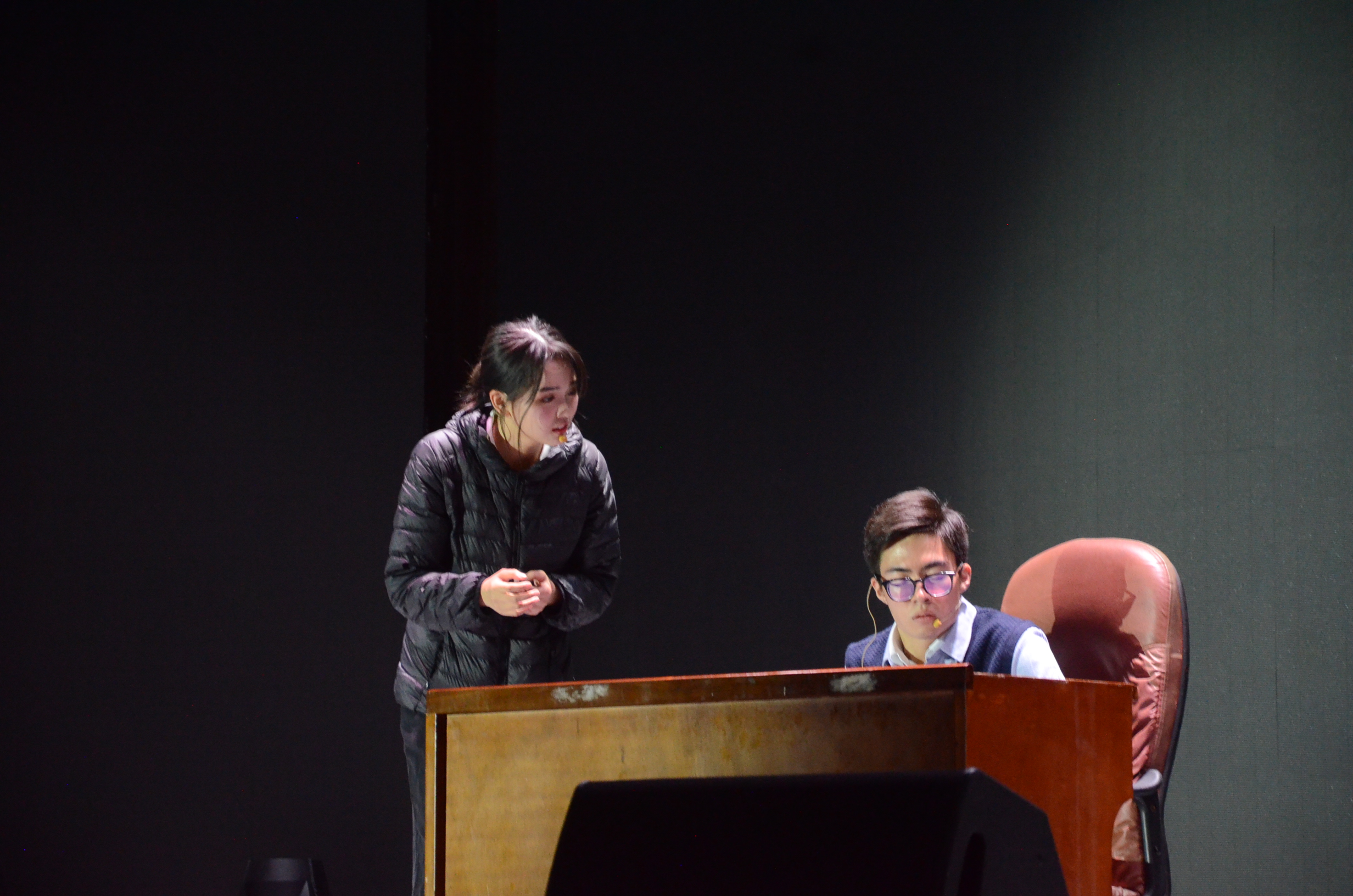 一捧一哏,一唱一和,相声唱腔,即兴作诗,播音班的两位同学在相声《我要当学霸》中,以传统形式,演绎现代的校园生活,幽默诙谐的段子与表演,收获了现场观众阵阵欢笑与掌声。