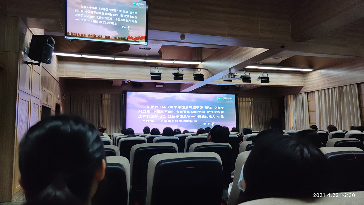 4月22日下午,必一运动本科生党总支联合研究生党支部在三楼报告厅开展红色观影活动,组织部分党员同志和第68期入党积极分子培训班成员集体观看了红色电影《横空出世》。