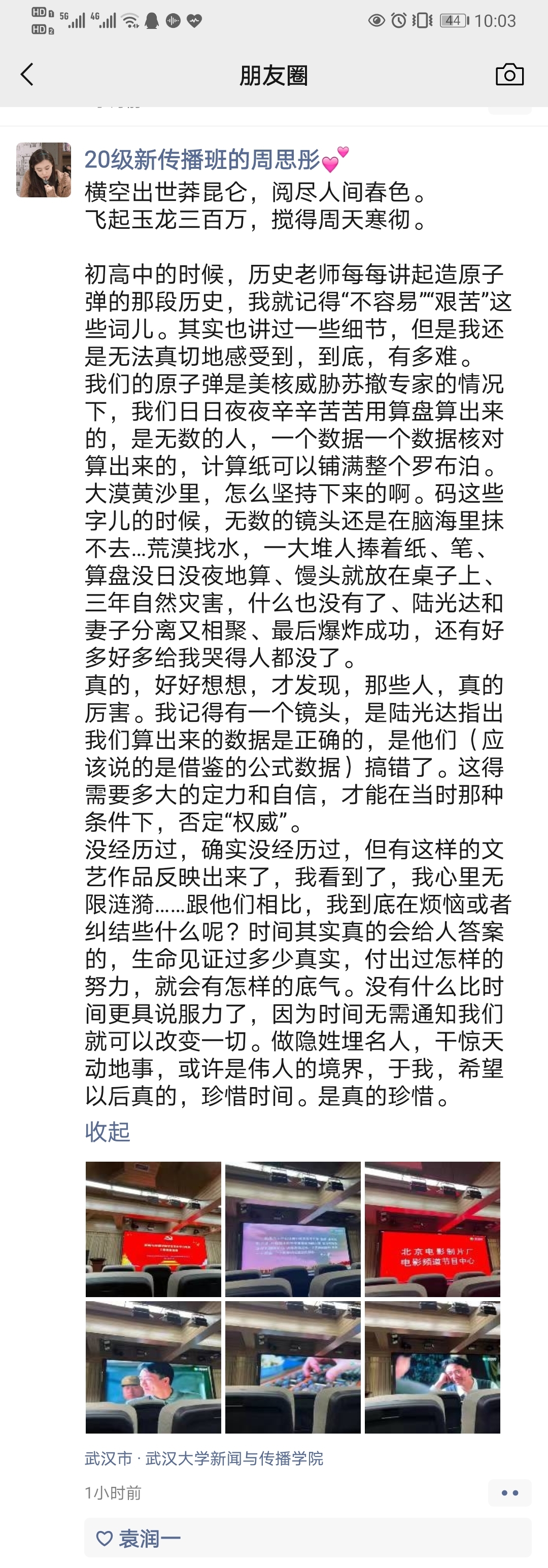 支部成员和入党积极分子培训班同学在观影之后进行了积极讨论,大家纷纷表示受到极大的精神震撼和思想教育,先辈们“热爱祖国、无私奉献,自力更生、艰苦奋斗,大力协同、勇于登攀”的两弹一星精神令人动容。