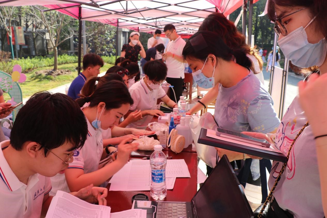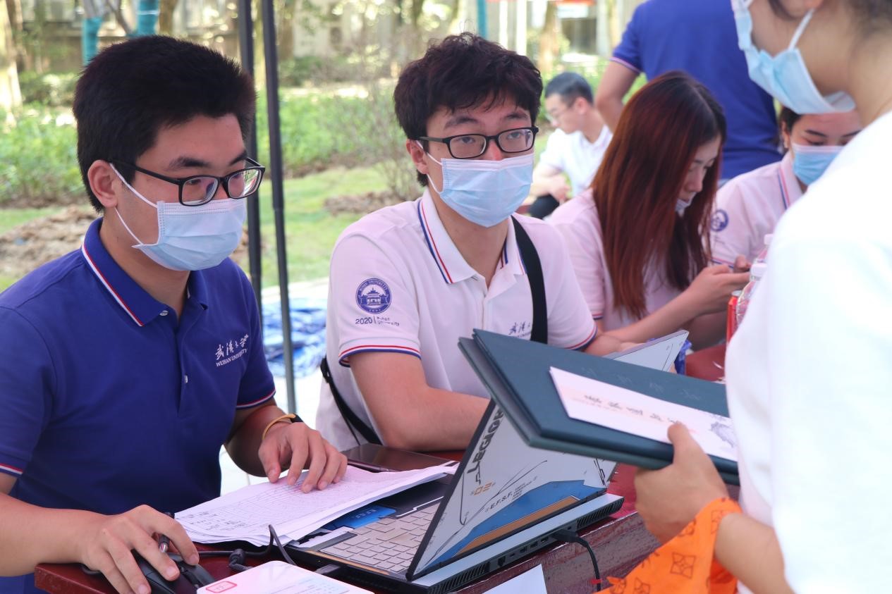 迎新过程中,公司党委副书记张琦老师,公司研究生工作办公室的帅晓琴老师、程盼盼老师、杨頔老师,以及两位兼职辅导员杨泽、蒋晓婧也来到了现场,指导和协助报到工作。老师与新生们交流着兴趣爱好和未来规划,希望他们能够不虚此行,不负青春,在珞珈山下为自己的人生写下满意的篇章。