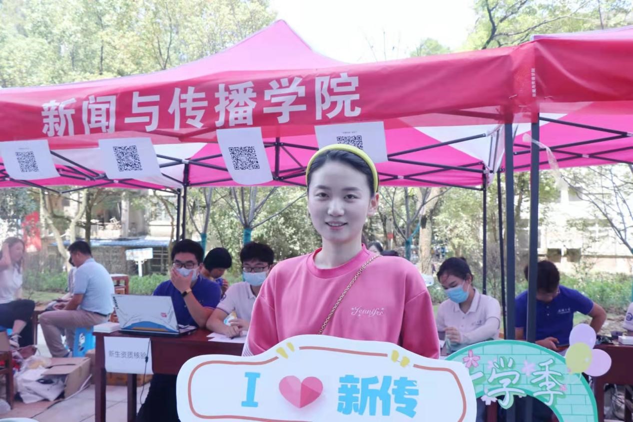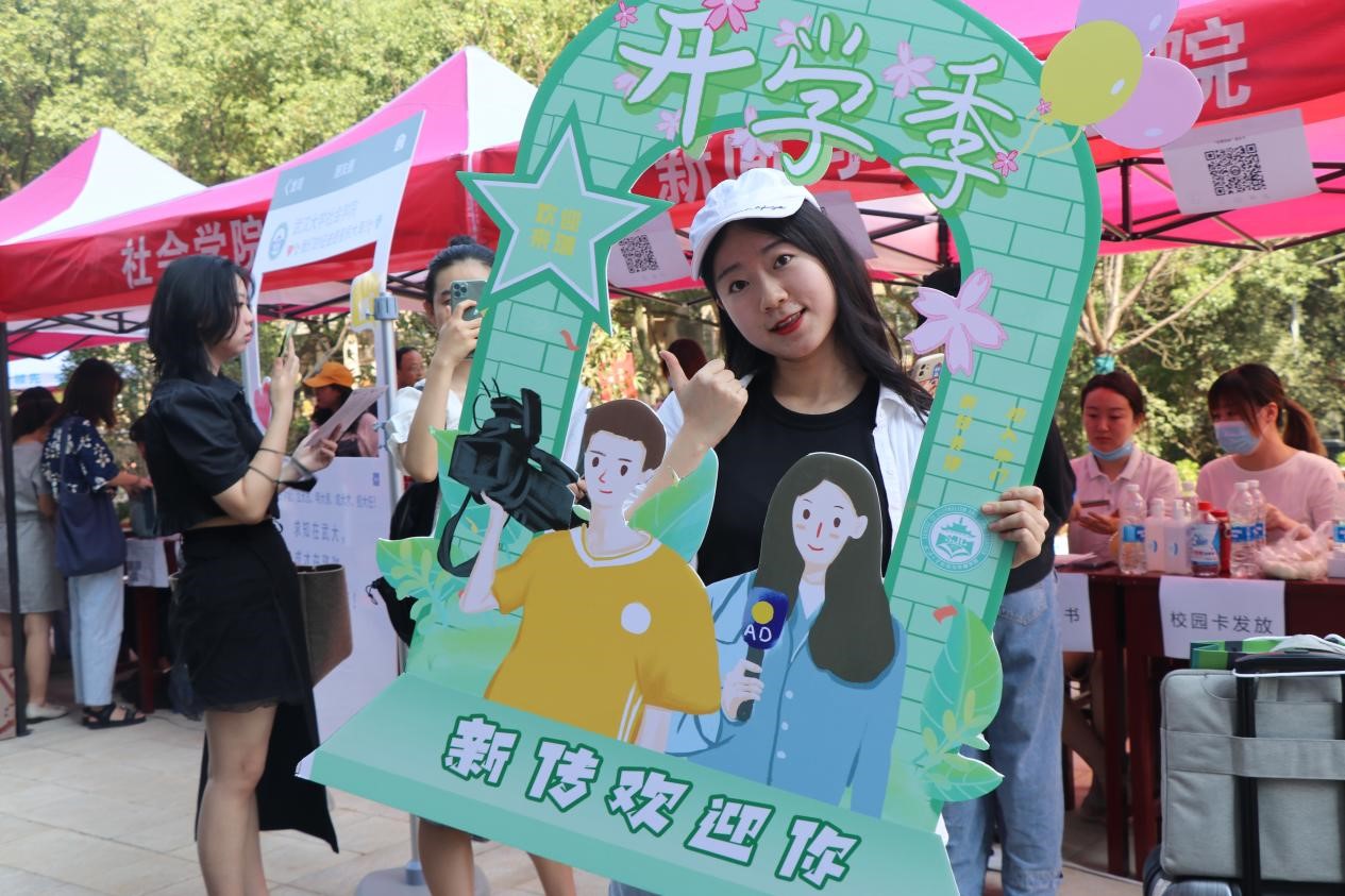 此外,视频组的新生同学在完成自己的报到注册之后,也来到迎新现场,用相机镜头记录下迎新当天的热闹非凡。“以新人之名,行传媒之事”不仅是拍照时的标语,更是武大新传人的心声。