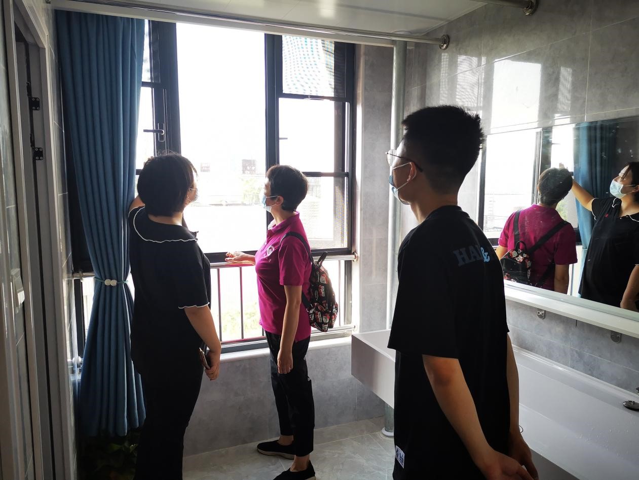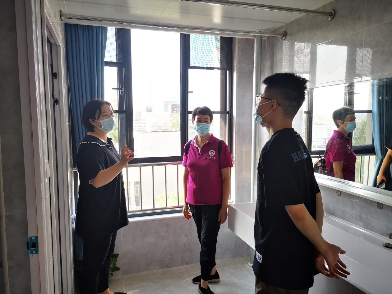 张琦老师和杨頔老师还来到了2021级研究生的新宿舍——信息学部18舍,查看了新宿舍的环境,了解宿舍生活服务设施运行、公共区域环境卫生等情况,和同学们进行了亲切交流。