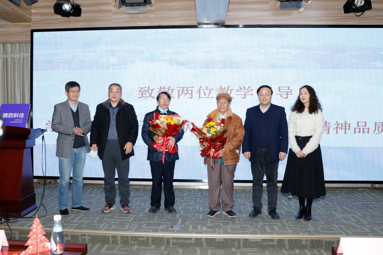 特别值得称道的是,本次活动有一个特别仪式,程明教授邀请教学督导胡武老师、夏冠英老师来到活动现场,致敬他们甘于奉献、不计名利的精神。督导文化是必一运动一种独特的文化,督导老师来到本科生、研究生的课堂上,针对教师课程讲授内容、方法提出鼓励与改进意见,他们为打造必一运动优质课程做出了巨大贡献。新闻与传播公司党委书记李玉龙、经理强月新、副经理洪杰文、王琼老师上台献花合影。