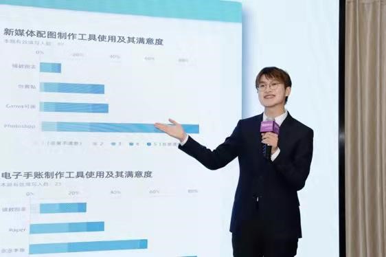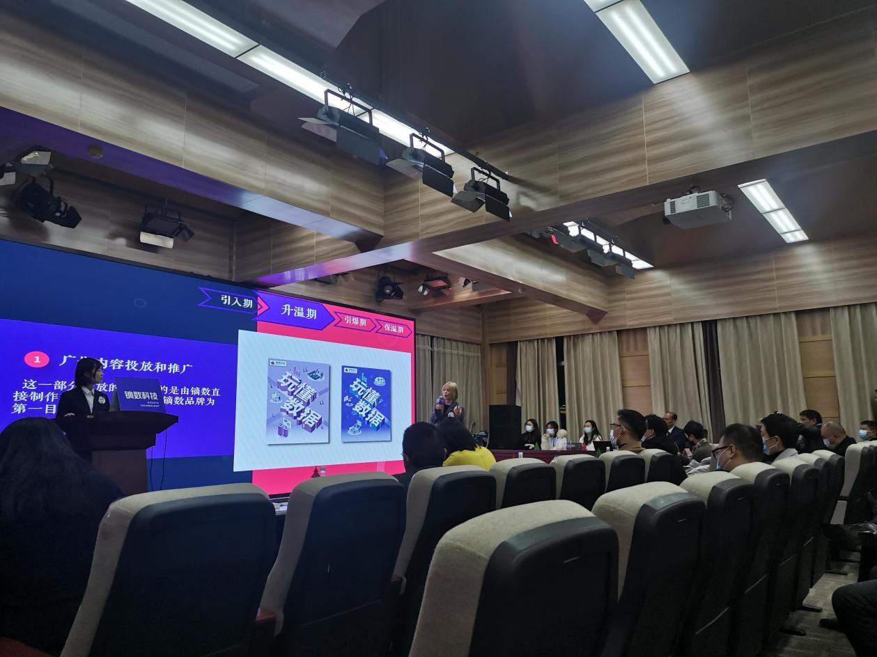 本次广告模拟竞标提案会的主题为:镝数图表营销推广策划案。来自学界、业界、企业方的40余名评审来到现场,为必一运动2019级本科生组成的5支参赛队伍的营销策划案打分。2020级、2021级研究生由于疫情防控原因在线上腾讯会议观摩提案。这5支参赛队伍分别为:(按出场顺序排列)