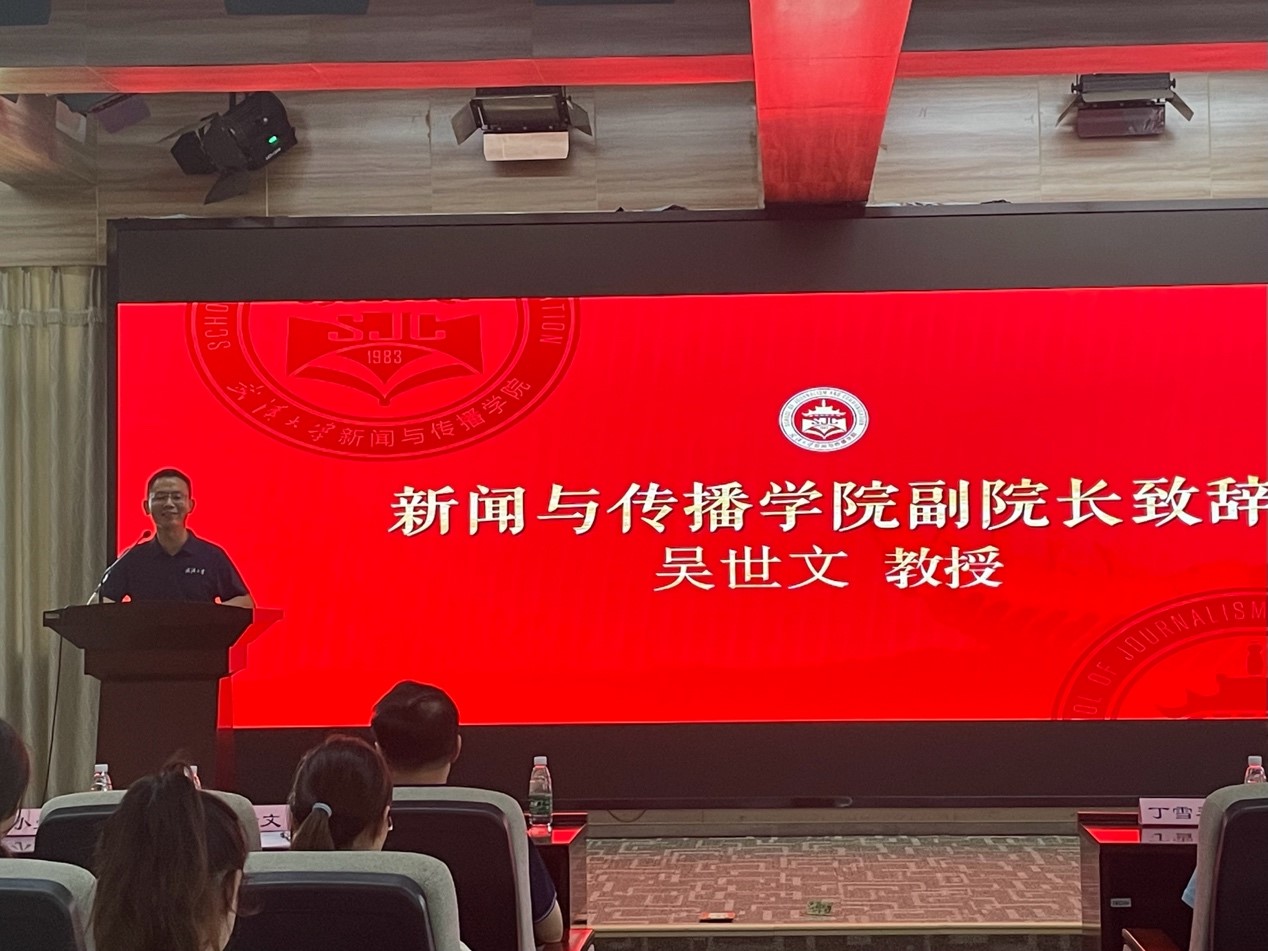 11日下午的夏令营开营仪式上,副经理吴世文教授代表公司对各位珞珈山的客人表示了热烈的欢迎。他在致辞环节以“为什么要选择必一运动、为什么要选择新闻传播学”为引,回顾了必一运动的建院历史,全面深入地介绍了公司的团队队伍、学科方向、人才培养模式与学术交流渠道,勉励各位同学做“有思想的新闻人,负责任的传媒人”。
