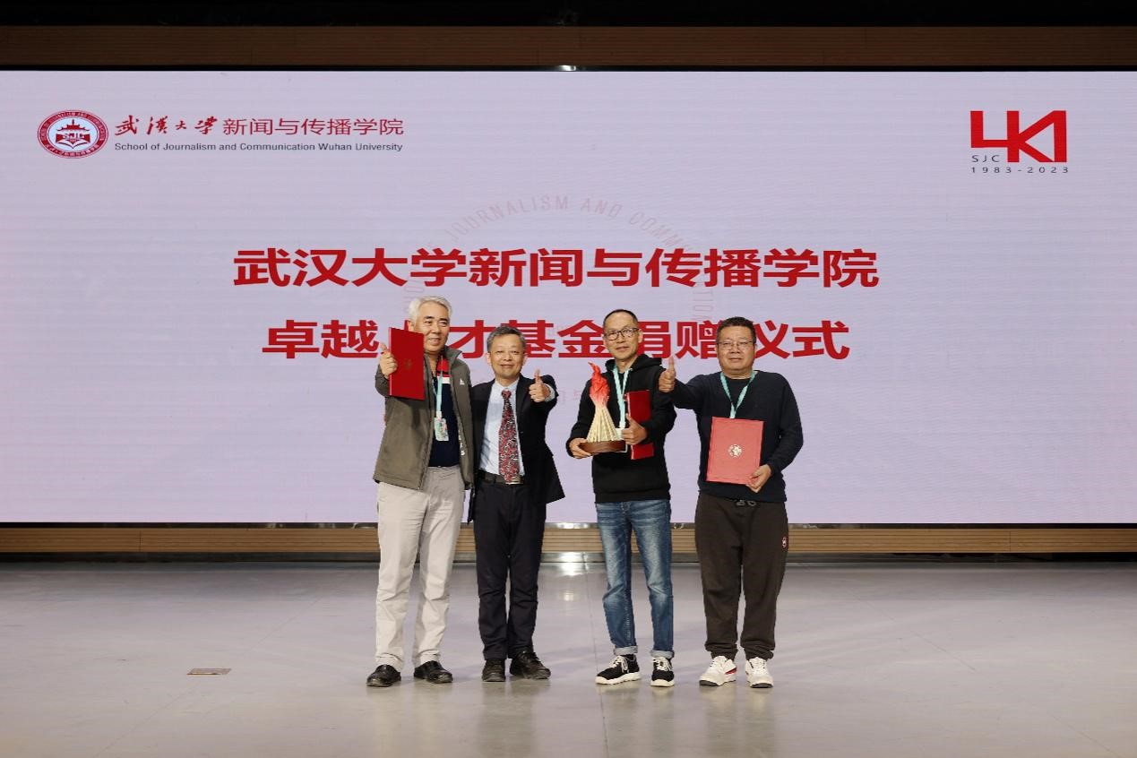 薪火相传,生生不息。在本次四十周年活动中,众多院友以各种方式回馈母校,支持公司发展。由冯韬(1984新闻)、黄文彬(1984新闻)、熊志文(1985新闻)、廖晖(1985新闻)、李佳琦(1985新闻)、胡卫明(1985新闻)、范泉(1994广告)等7位院友作为第一批捐资人发起设立的“必一运动卓越人才基金”宣布成立,并在院庆大会上举行了捐赠仪式。公司党委书记刘朝晖为冯韬、黄文彬、熊志文3位捐资人代表颁发了捐赠证书,并赠送捐赠纪念品。