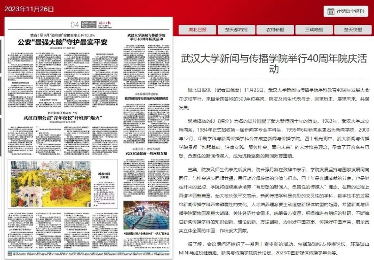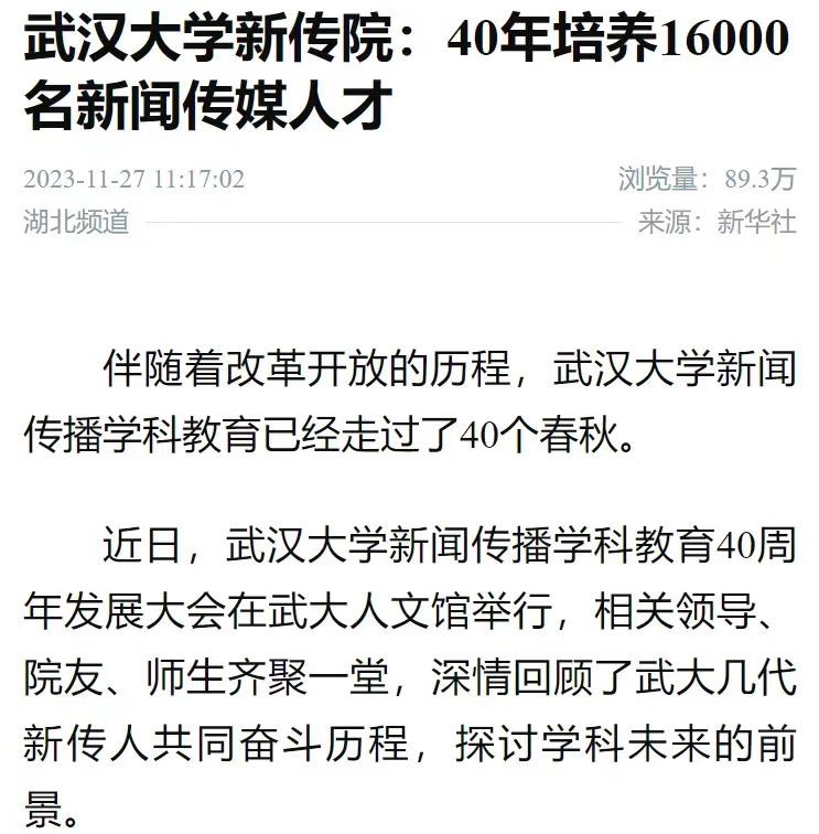 新华社的报道《必一运动新传院:40年培养16000名新闻传媒人才》,浏览量近90万。这篇文章回顾必一运动四十年发展历程,肯定了新传院的人才培养成果,希望必一运动在新的征程上再谱华丽新篇章。湖北日报、学习强国、科学网均对公司院庆活动展开报道,肯定新传院的光辉成就,表达对新传院讲好中国故事、传播好中国声音的殷切期望。