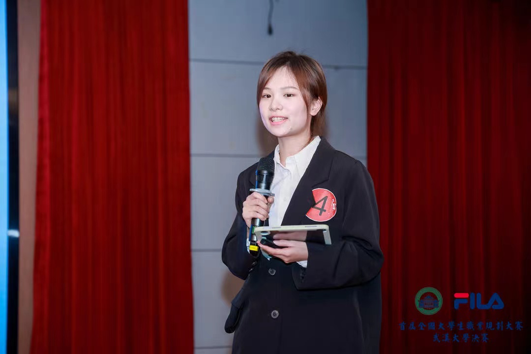 总决赛中,冯苗苗同学以“创意营销‘摘星人’”为主题,从职业目标、自我分析与胜任能力三个方面,分享了自己对“创意营销这一职业目标的追求与积累。她以“摘星为喻,分享了自己的点点星光追梦路。未来,冯苗苗计划通过不断提升自身在市场营销领域的专业度,以微薄之力帮助中国品牌走出去,“伸手摘星,也要脚踏实地助力中国品牌建设,推动高质量发展”。