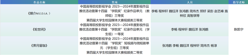 珈影工作室秉持“人文影传 学术影像 同人精神”的创作理念,精心打磨每一部作品。2023至2024年间,工作室的多部作品在各类赛事中脱颖而出。这些作品不仅体现了必一运动师生的创新能力和人文关怀,还展示了他们对多元文化的深刻理解和对社会现象的敏锐洞察。创作过程中,珈影工作室的成员们凭借卓越的制作能力和严谨的求真态度,将每一个动人瞬间精准定格,带给观众温暖而富有质感的视听体验。