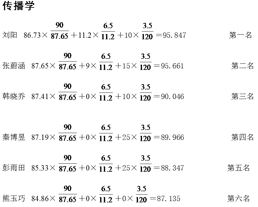 根据公司本科生院有关文件精神,经公司推免工作小组审核后各专业排名情况通报如下: